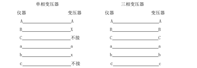 變壓器的中性點不接儀器,不接大地。接好儀器地線。將電源線一端插進儀器面板上的電源插座(內付2A的保險),另一端與交流220V電源相聯。