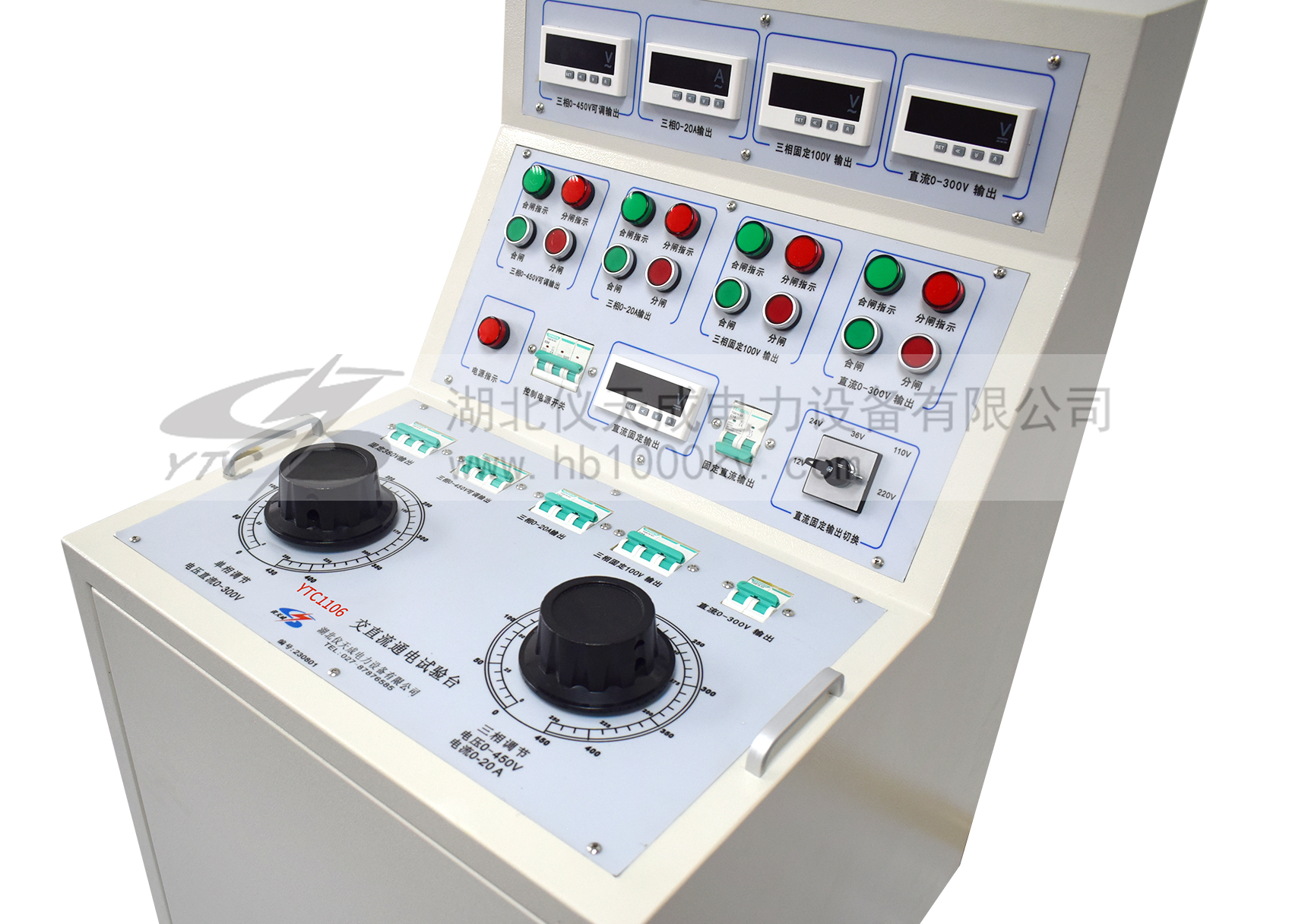 YTC1106系列高低壓開關柜通電試驗臺用于高低壓開關柜生產廠家對所生產的高低壓開關柜進行出廠前的各項通電試驗。它能提供各種交、直流電源,便于對開關柜的檢測,提高工作效率。